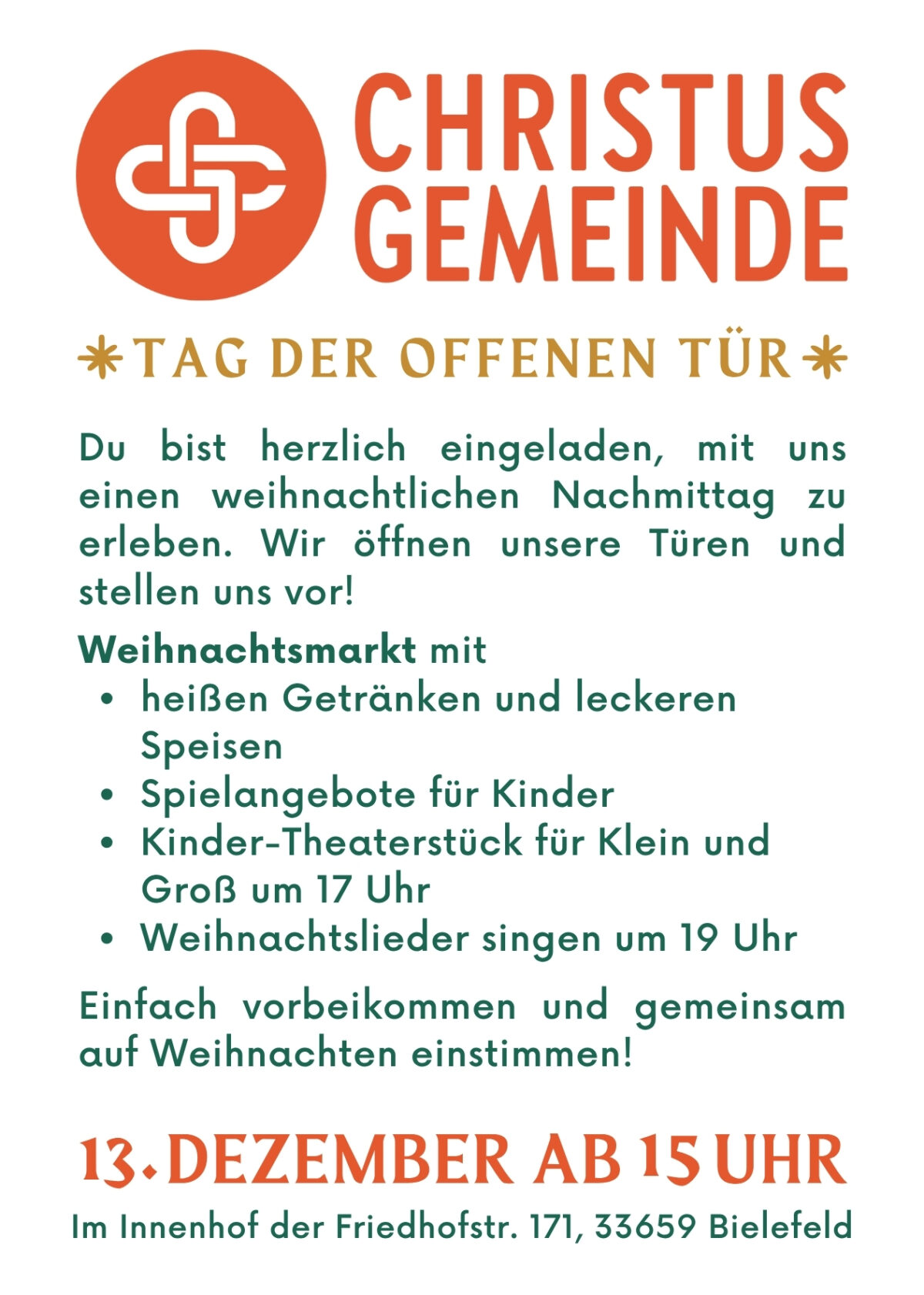 Wenn du mit Glauben und Christentum gar nichts am Hut hast, aber aus Neugierde einmal hineinschnuppern möchtest, bist du herzlich willkommen! Wir sind kein Christen-only-Club, sondern offen für jeden, der Interesse am christlichen Glauben hat und mit uns Gemeinschaft haben möchte.